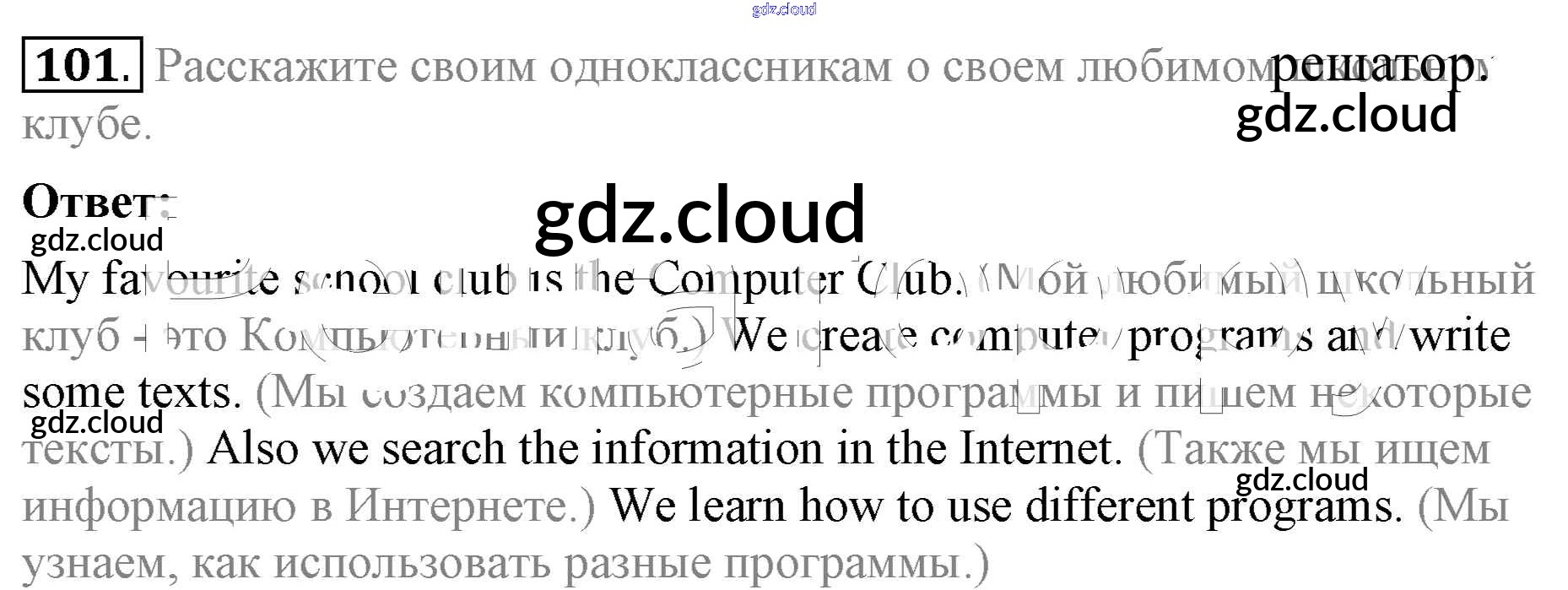 Ответ на задание 101 Учебник Английский язык за 5 (пятый) класс Биболетова, Денисенко, Трубанева Enjoy English 2015