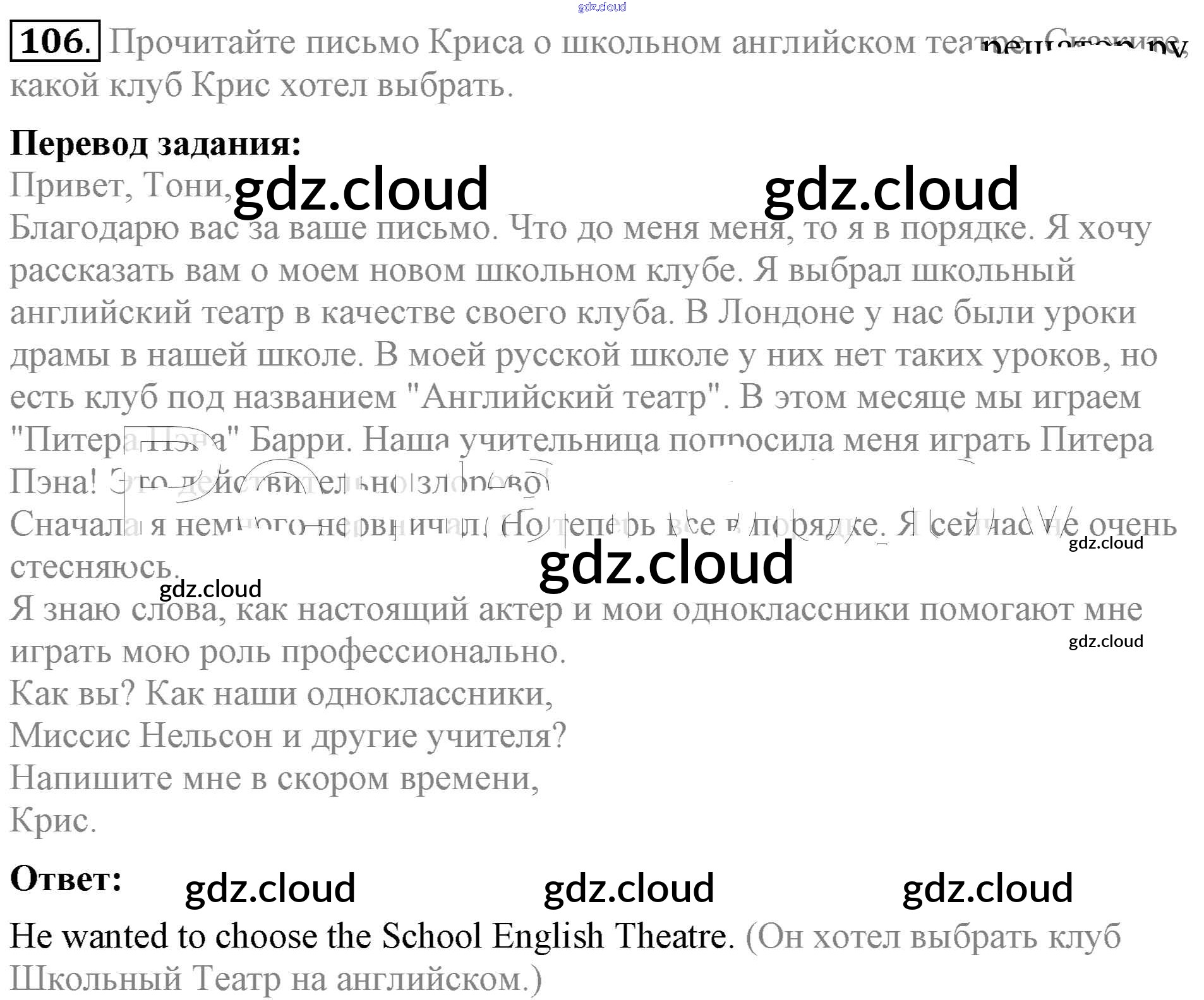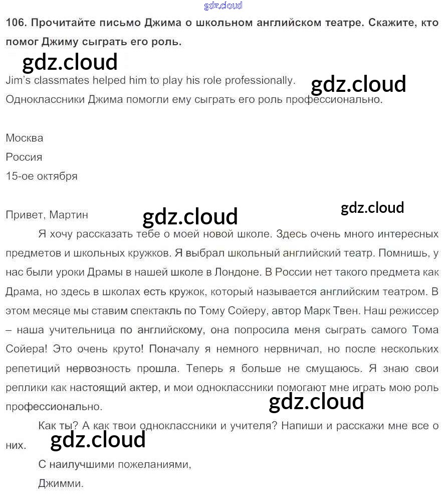 Ответ на задание 106 Учебник Английский язык за 5 (пятый) класс Биболетова, Денисенко, Трубанева Enjoy English 2015