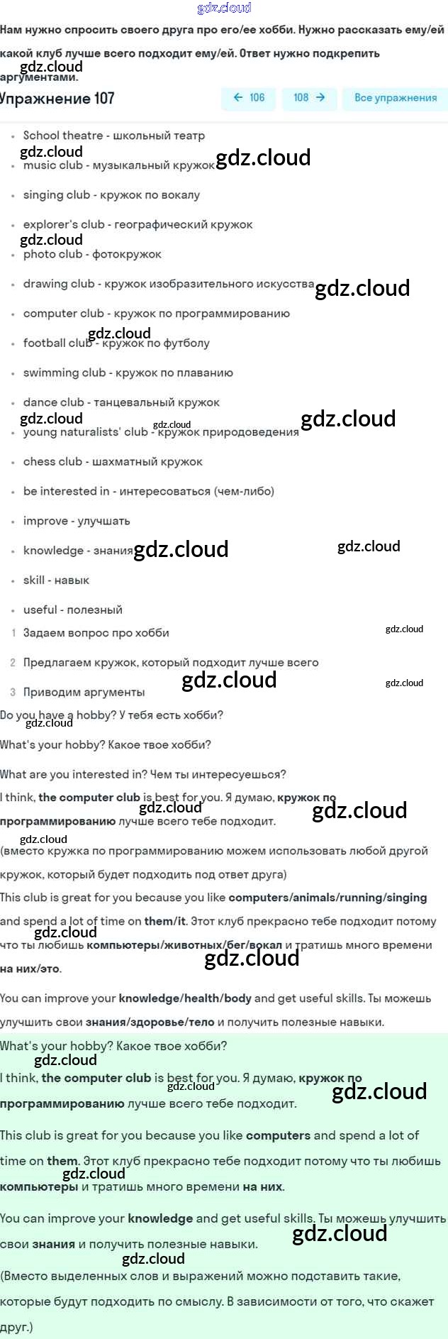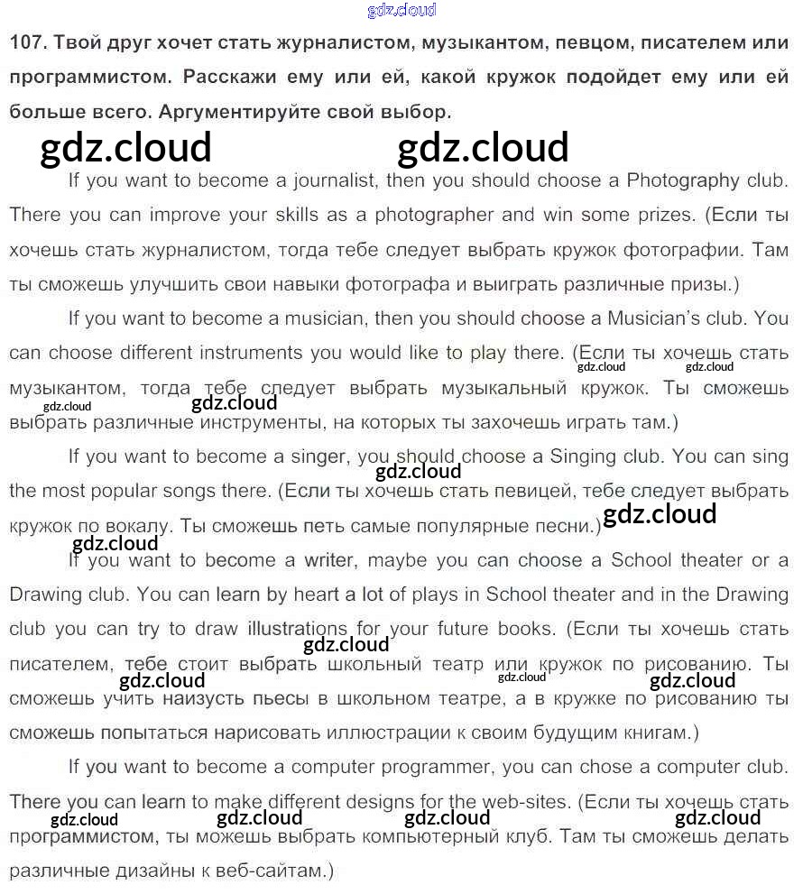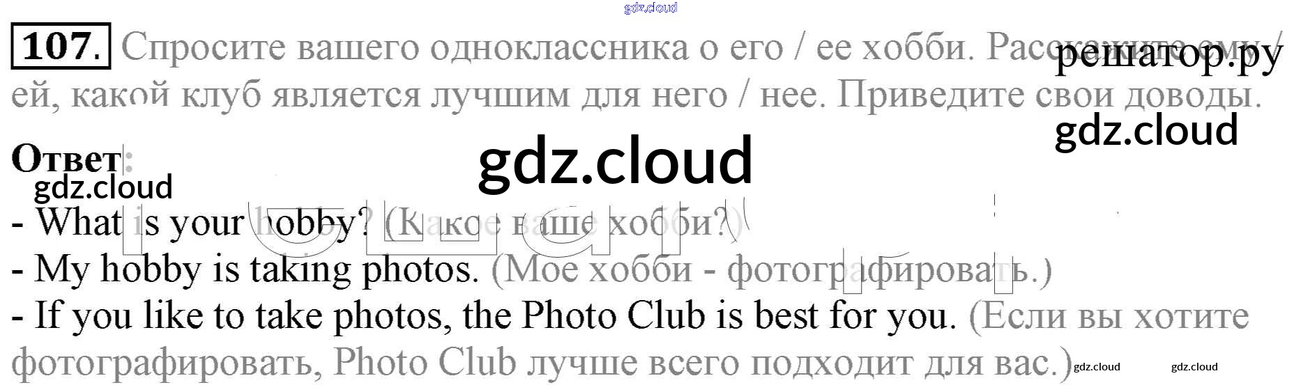 Ответ на задание 107 Учебник Английский язык за 5 (пятый) класс Биболетова, Денисенко, Трубанева Enjoy English 2015