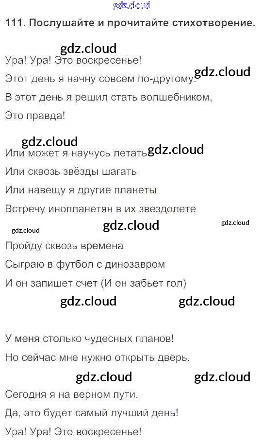 Ответ на задание 111 Учебник Английский язык за 5 (пятый) класс Биболетова, Денисенко, Трубанева Enjoy English 2015