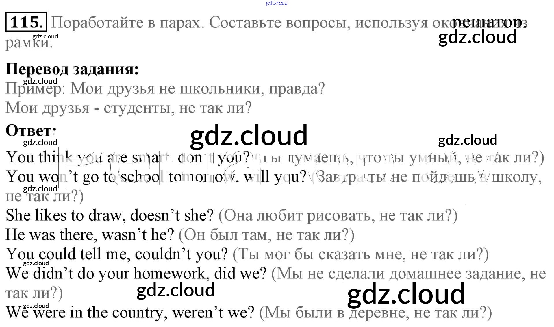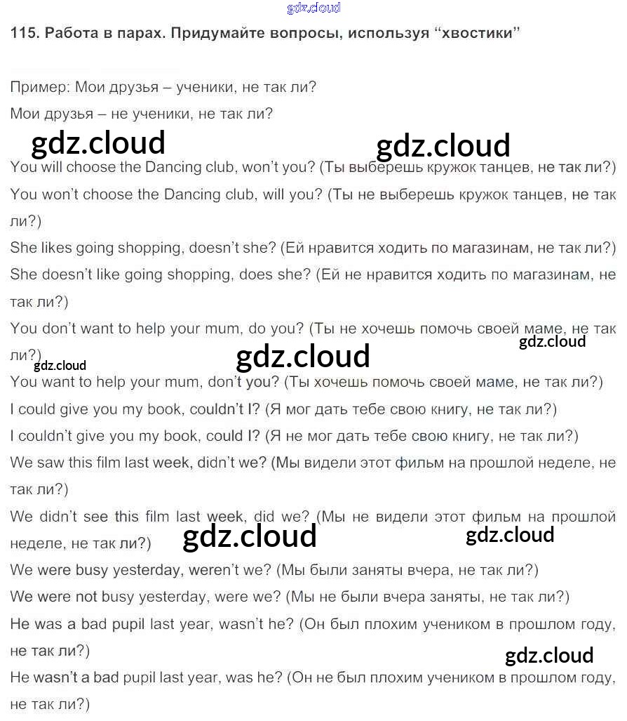 Ответ на задание 115 Учебник Английский язык за 5 (пятый) класс Биболетова, Денисенко, Трубанева Enjoy English 2015
