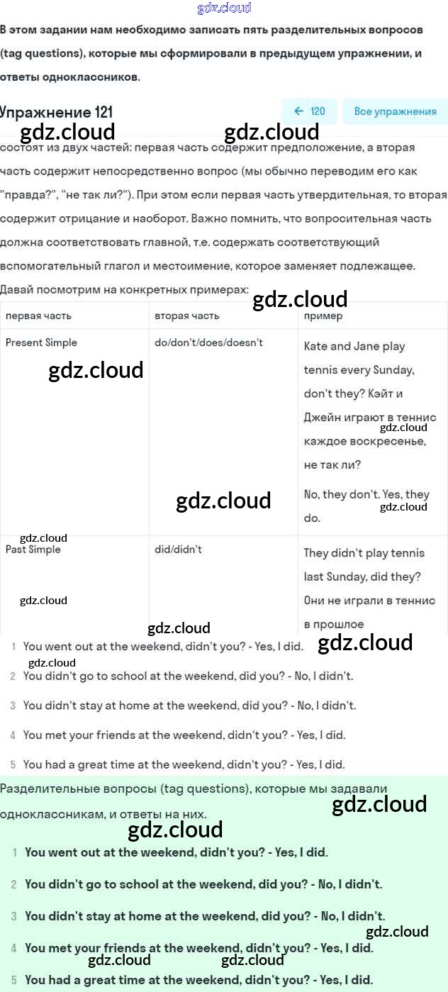 Ответ на задание 121 Учебник Английский язык за 5 (пятый) класс Биболетова, Денисенко, Трубанева Enjoy English 2015