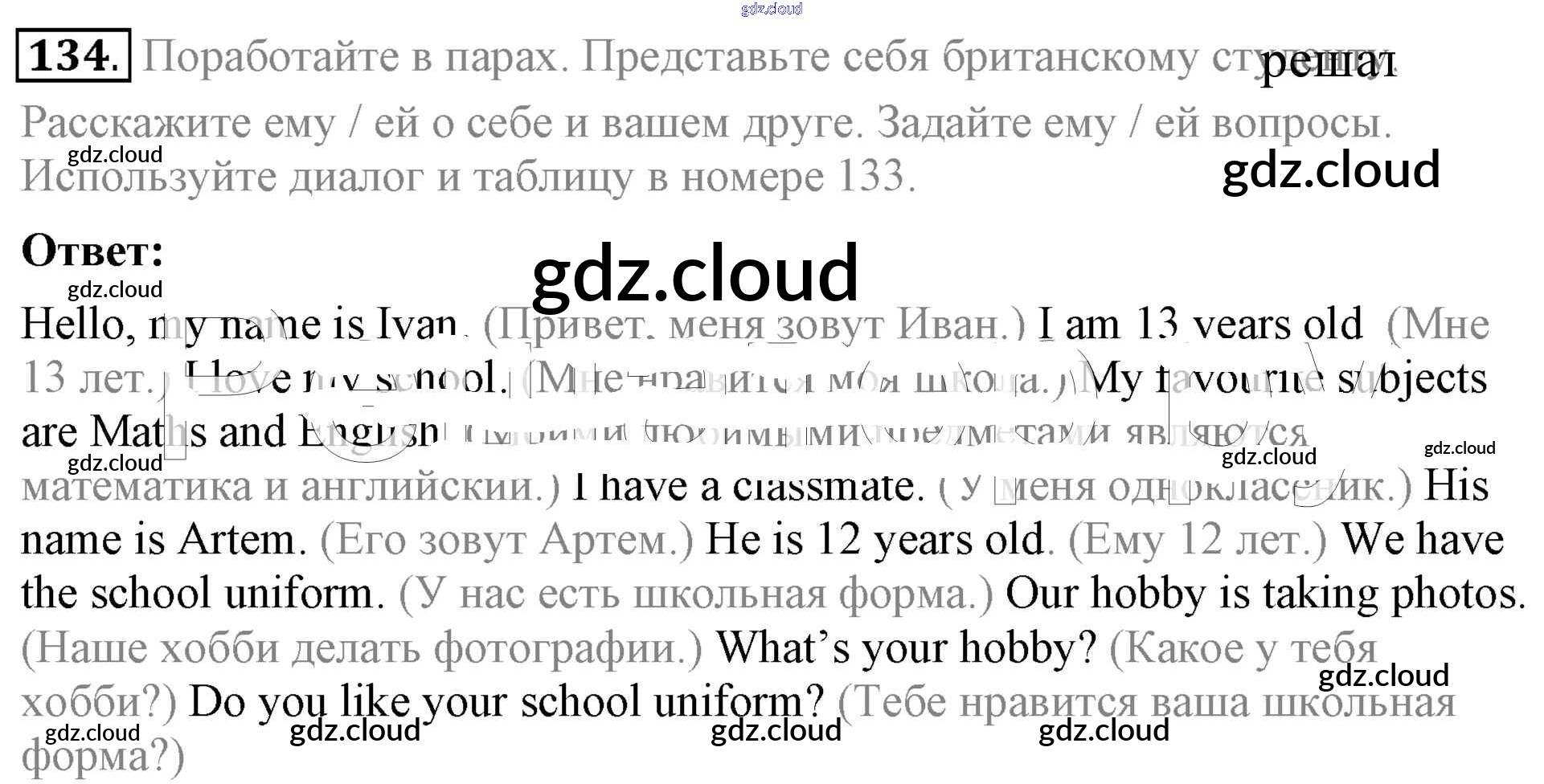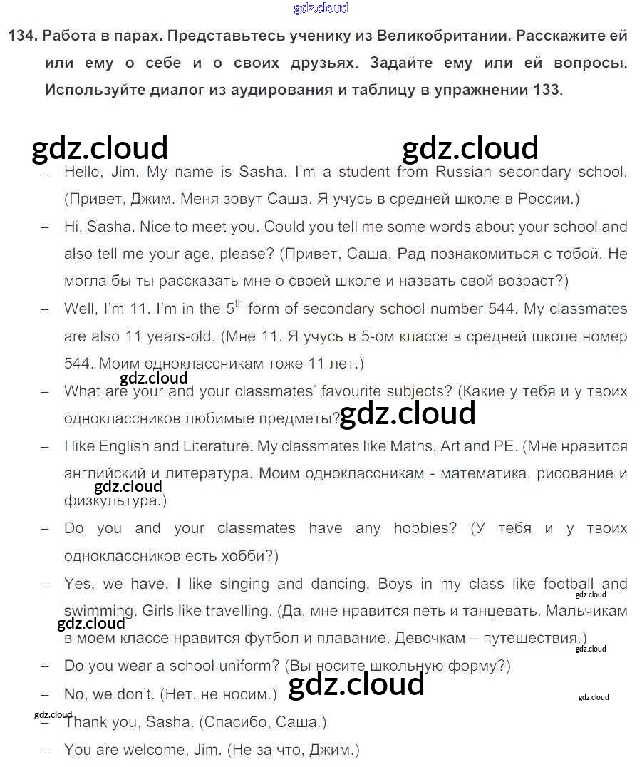Ответ на задание 134 Учебник Английский язык за 5 (пятый) класс Биболетова, Денисенко, Трубанева Enjoy English 2015