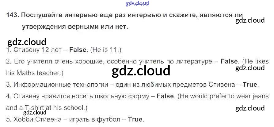 Ответ на задание 143 Учебник Английский язык за 5 (пятый) класс Биболетова, Денисенко, Трубанева Enjoy English 2015