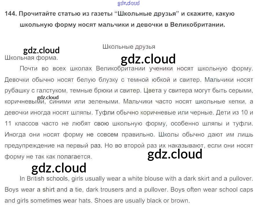 Ответ на задание 144 Учебник Английский язык за 5 (пятый) класс Биболетова, Денисенко, Трубанева Enjoy English 2015