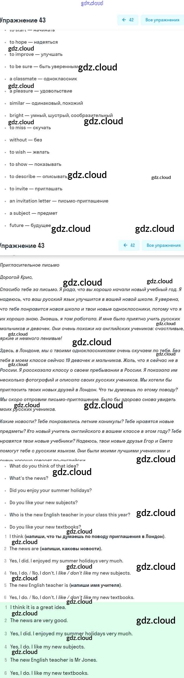 Ответ на задание 43 Учебник Английский язык за 5 (пятый) класс Биболетова, Денисенко, Трубанева Enjoy English 2015