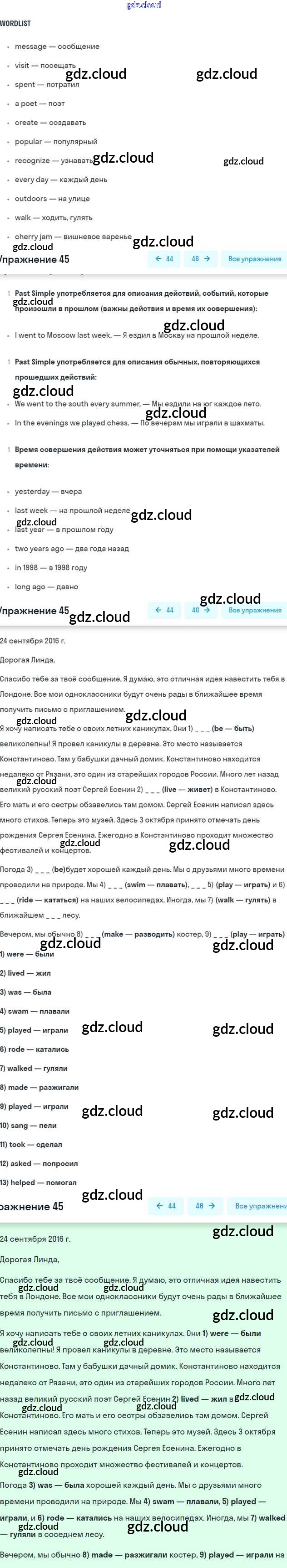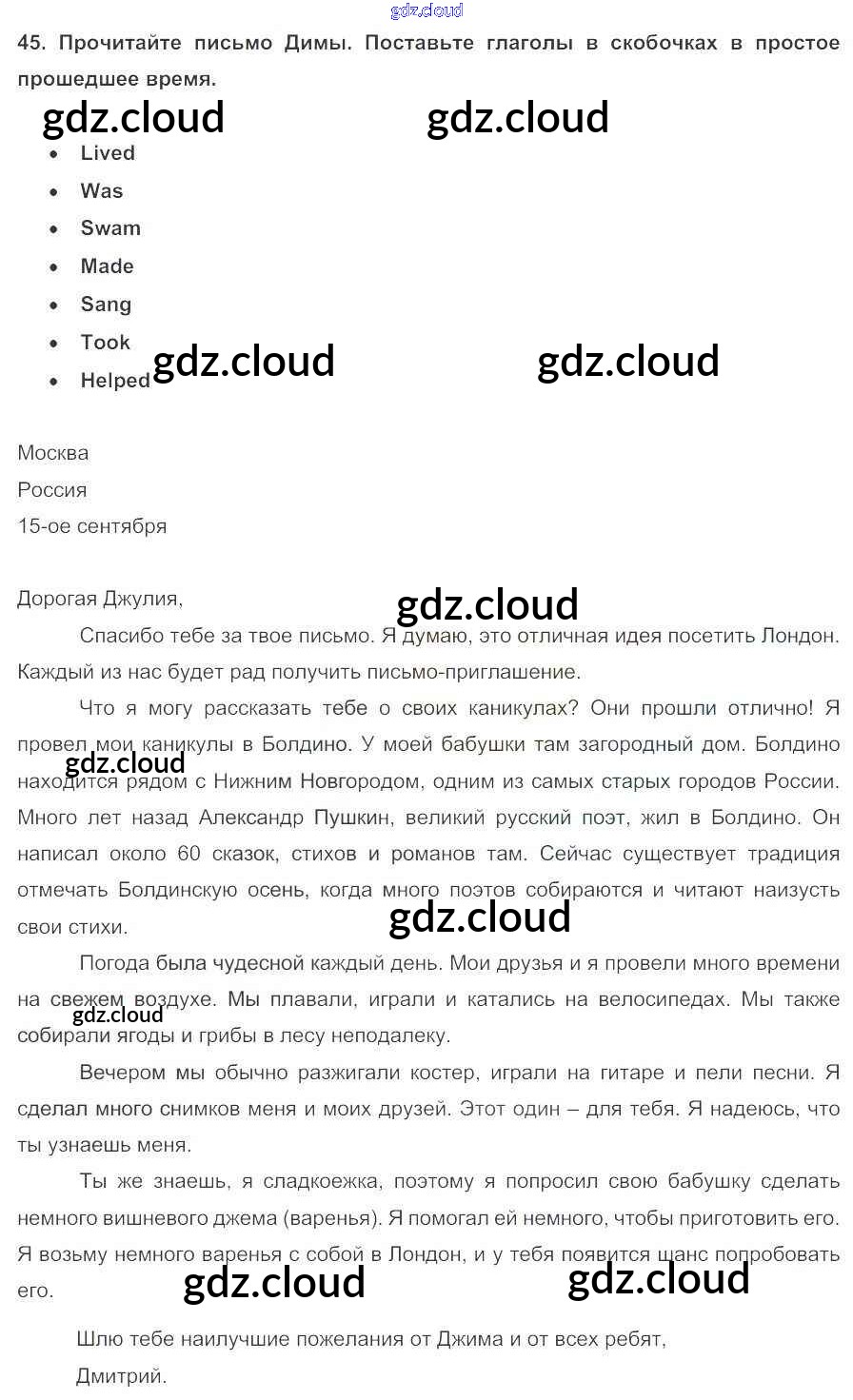 Ответ на задание 45 Учебник Английский язык за 5 (пятый) класс Биболетова, Денисенко, Трубанева Enjoy English 2015