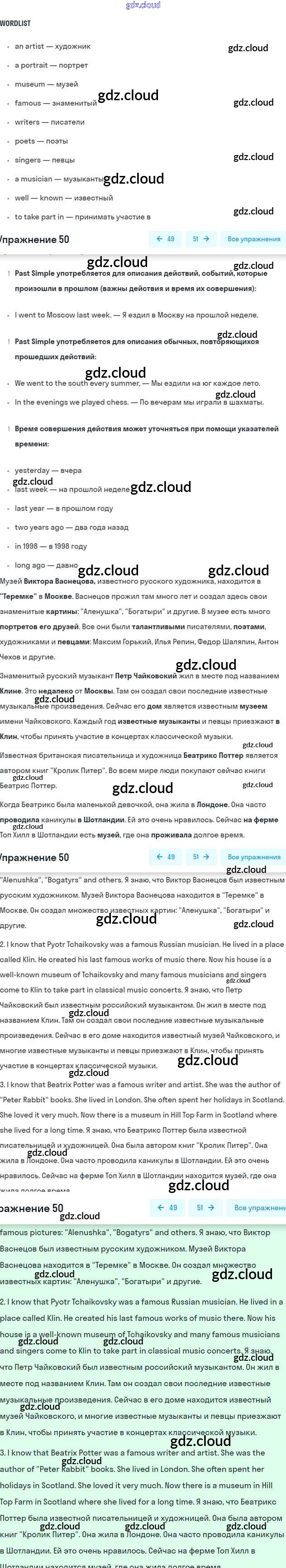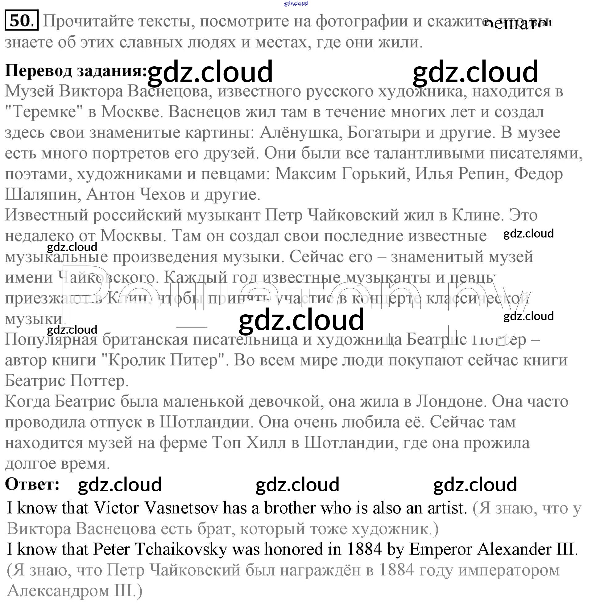 Ответ на задание 50 Учебник Английский язык за 5 (пятый) класс Биболетова, Денисенко, Трубанева Enjoy English 2015