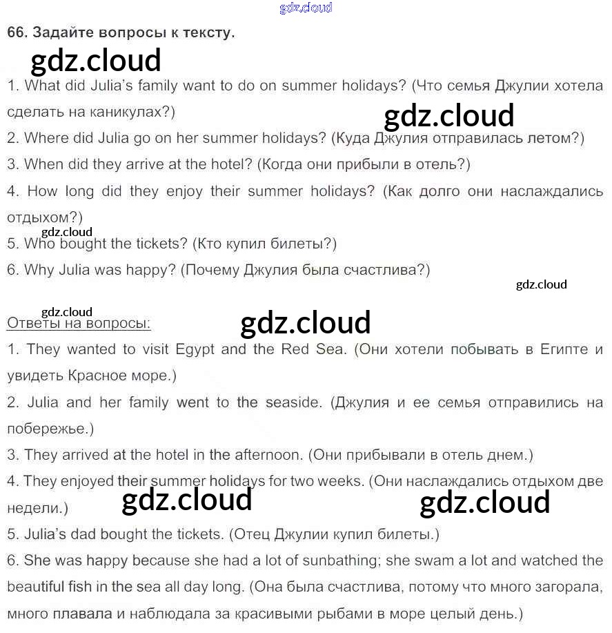 Ответ на задание 66 Учебник Английский язык за 5 (пятый) класс Биболетова, Денисенко, Трубанева Enjoy English 2015