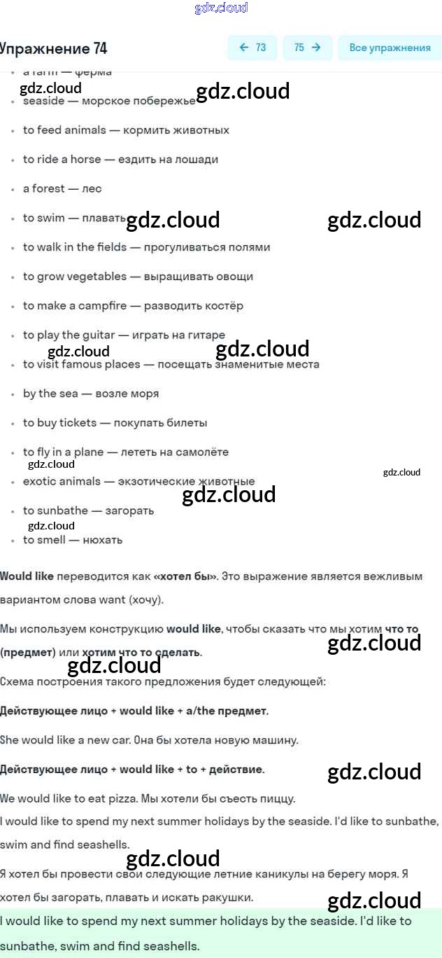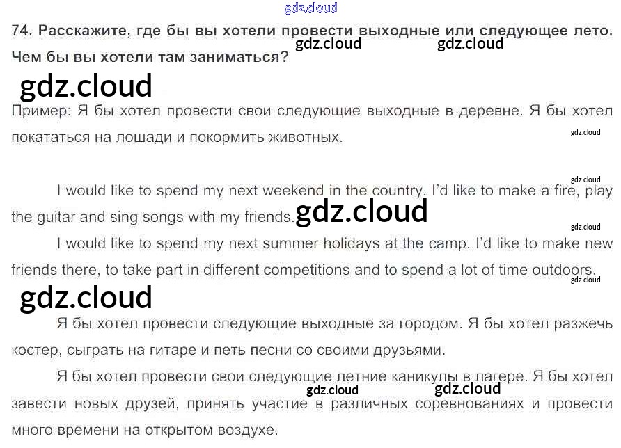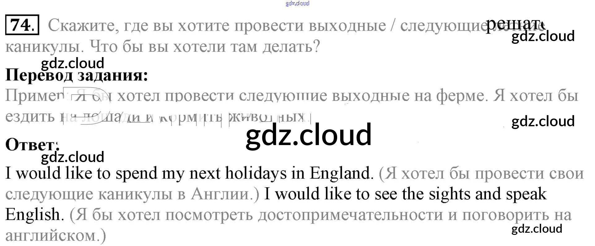 Ответ на задание 74 Учебник Английский язык за 5 (пятый) класс Биболетова, Денисенко, Трубанева Enjoy English 2015
