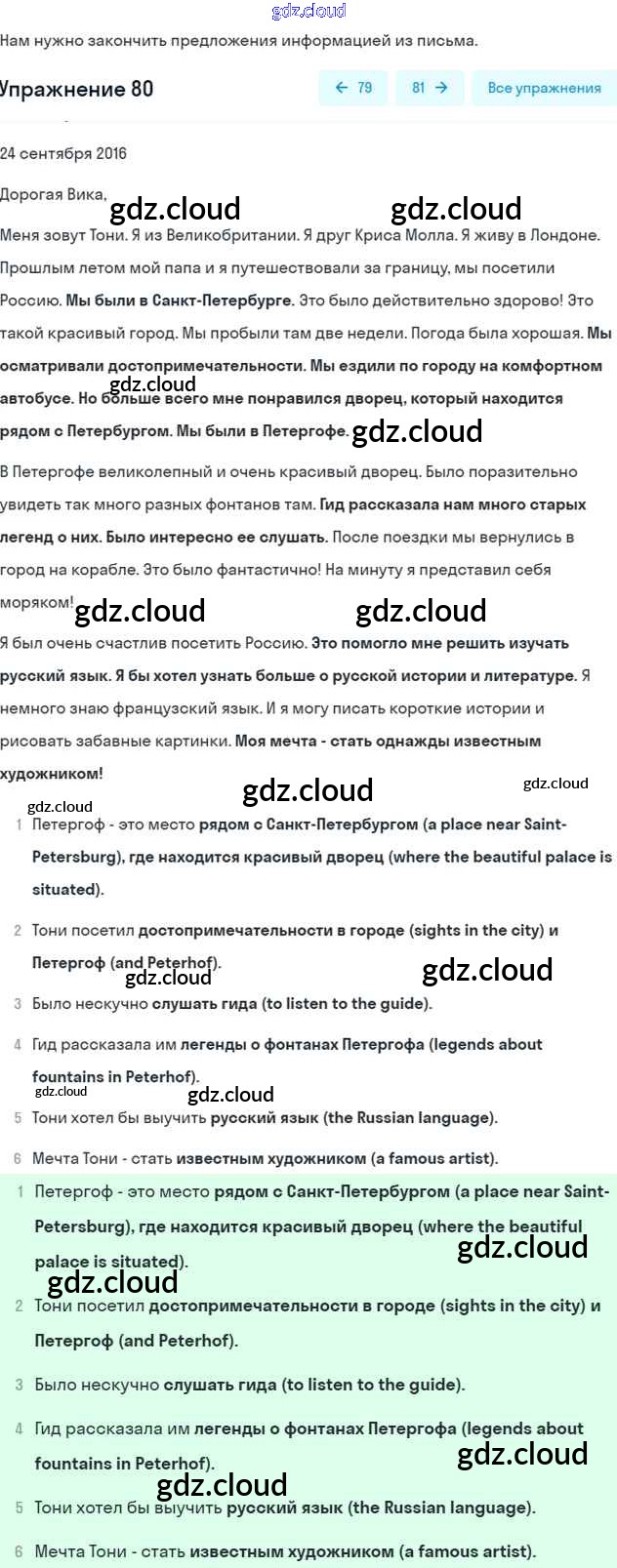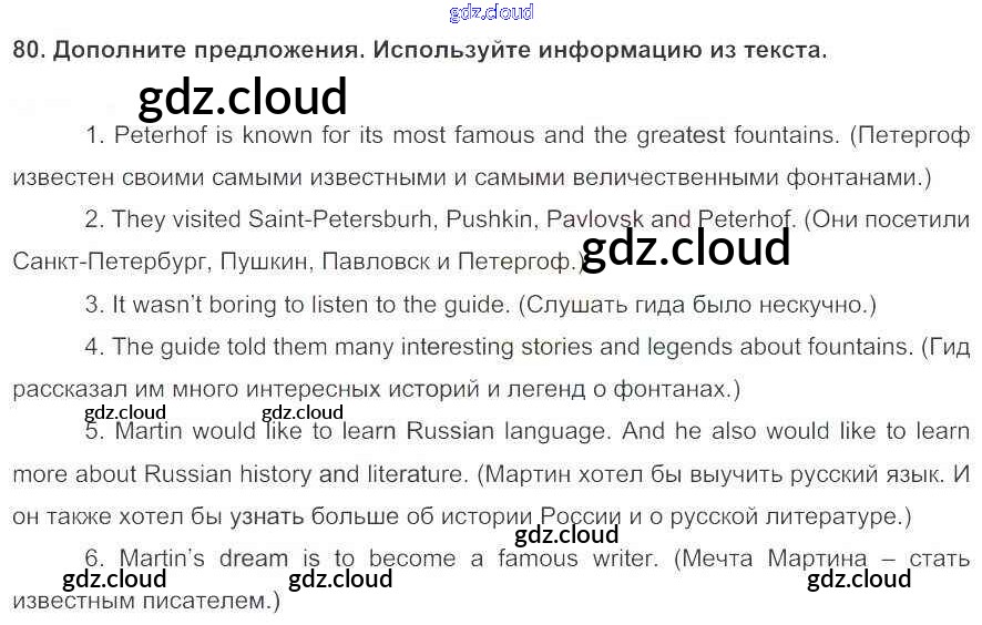 Ответ на задание 80 Учебник Английский язык за 5 (пятый) класс Биболетова, Денисенко, Трубанева Enjoy English 2015