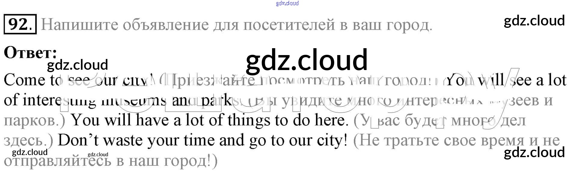 Ответ на задание 92 Учебник Английский язык за 5 (пятый) класс Биболетова, Денисенко, Трубанева Enjoy English 2015