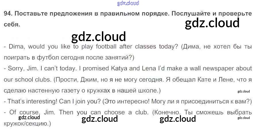Ответ на задание 94 Учебник Английский язык за 5 (пятый) класс Биболетова, Денисенко, Трубанева Enjoy English 2015