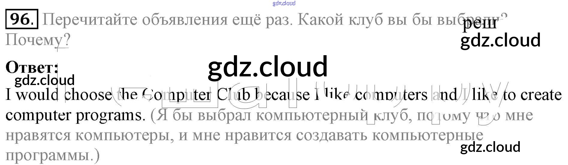 Ответ на задание 96 Учебник Английский язык за 5 (пятый) класс Биболетова, Денисенко, Трубанева Enjoy English 2015