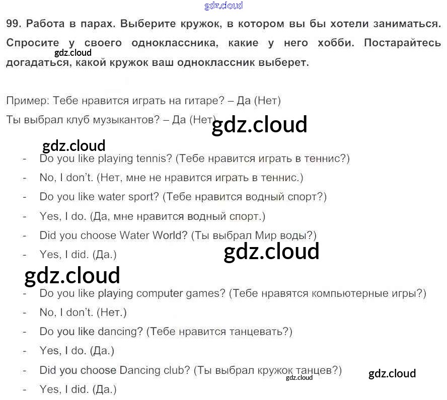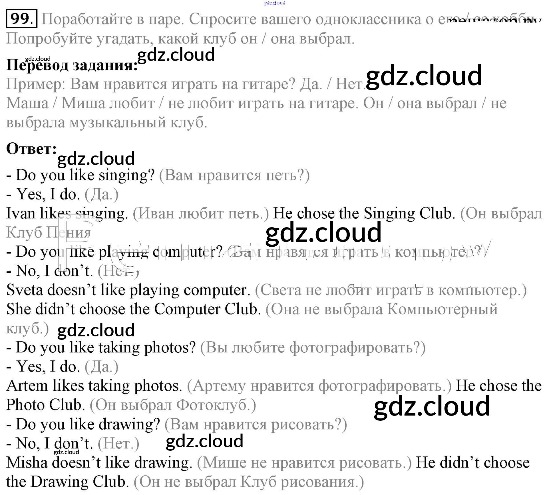 Ответ на задание 99 Учебник Английский язык за 5 (пятый) класс Биболетова, Денисенко, Трубанева Enjoy English 2015