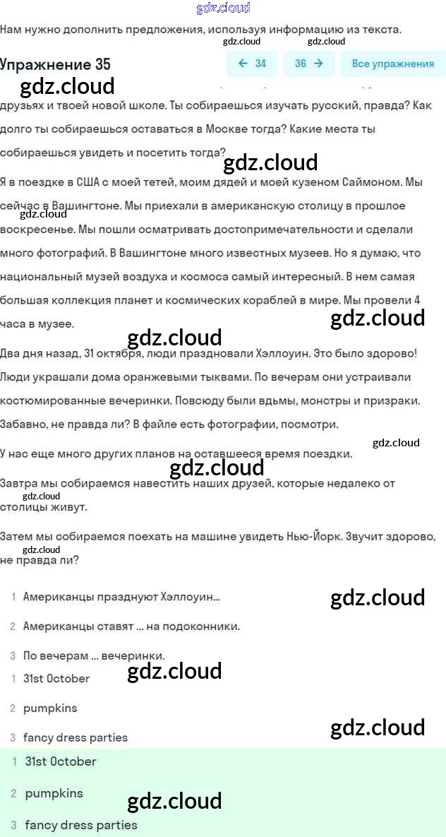 Ответ на задание 35 Учебник Английский язык за 5 (пятый) класс Биболетова, Денисенко, Трубанева Enjoy English 2015