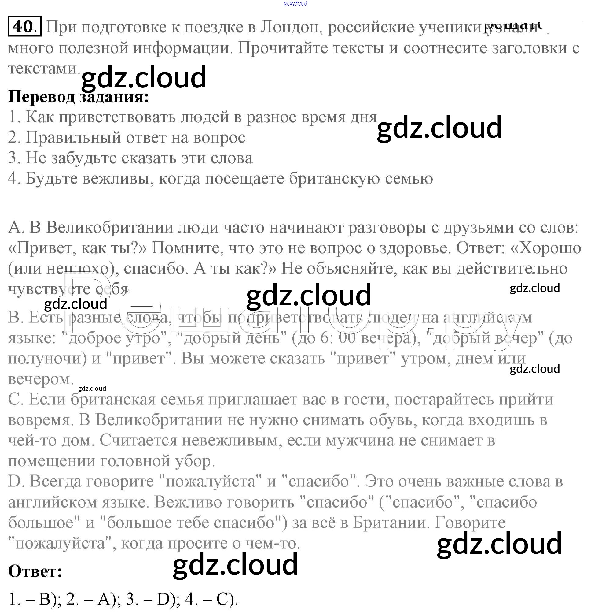 Ответ на задание 40 Учебник Английский язык за 5 (пятый) класс Биболетова, Денисенко, Трубанева Enjoy English 2015