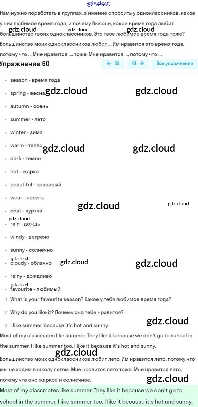 Ответ на задание 60 Учебник Английский язык за 5 (пятый) класс Биболетова, Денисенко, Трубанева Enjoy English 2015