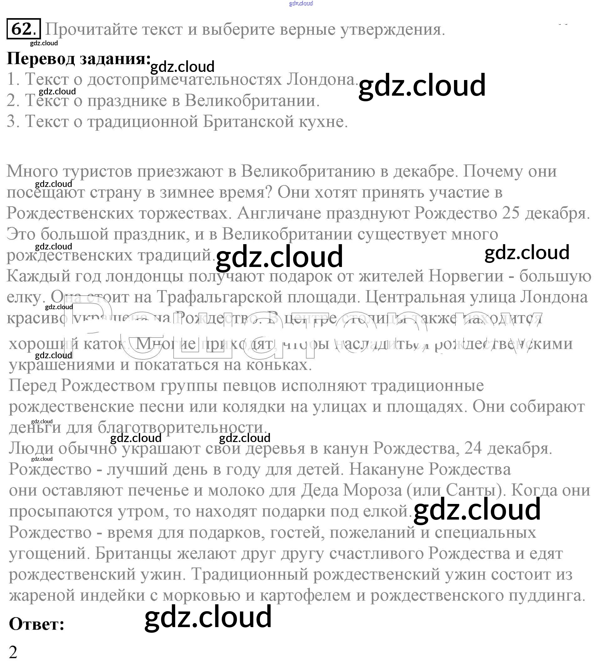 Ответ на задание 62 Учебник Английский язык за 5 (пятый) класс Биболетова, Денисенко, Трубанева Enjoy English 2015