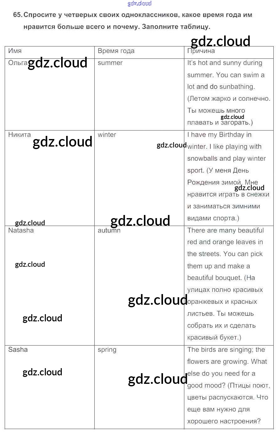 Ответ на задание 65 Учебник Английский язык за 5 (пятый) класс Биболетова, Денисенко, Трубанева Enjoy English 2015