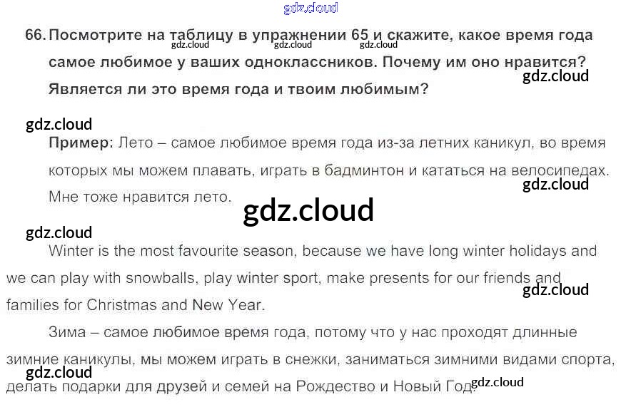 Ответ на задание 66 Учебник Английский язык за 5 (пятый) класс Биболетова, Денисенко, Трубанева Enjoy English 2015