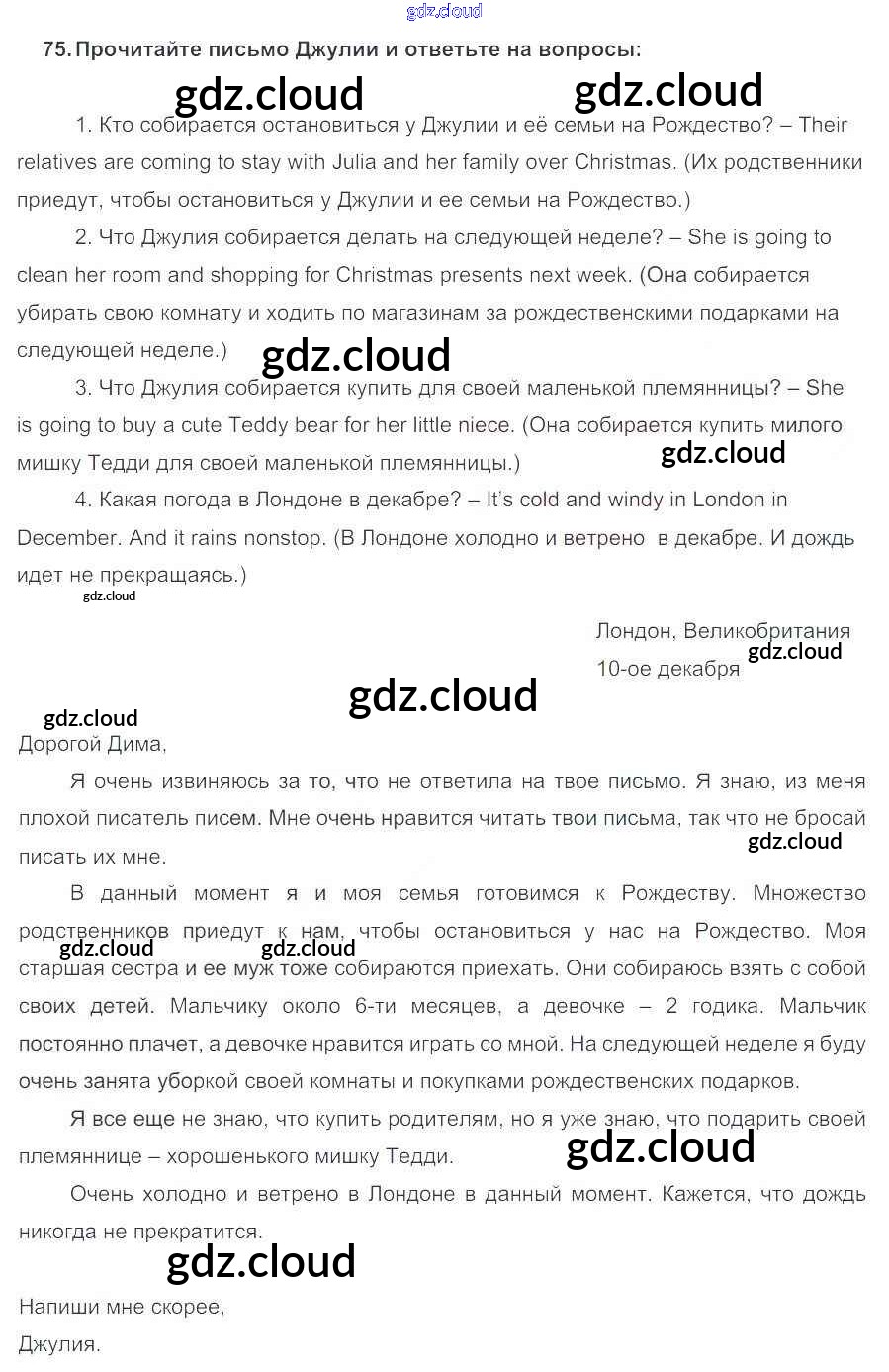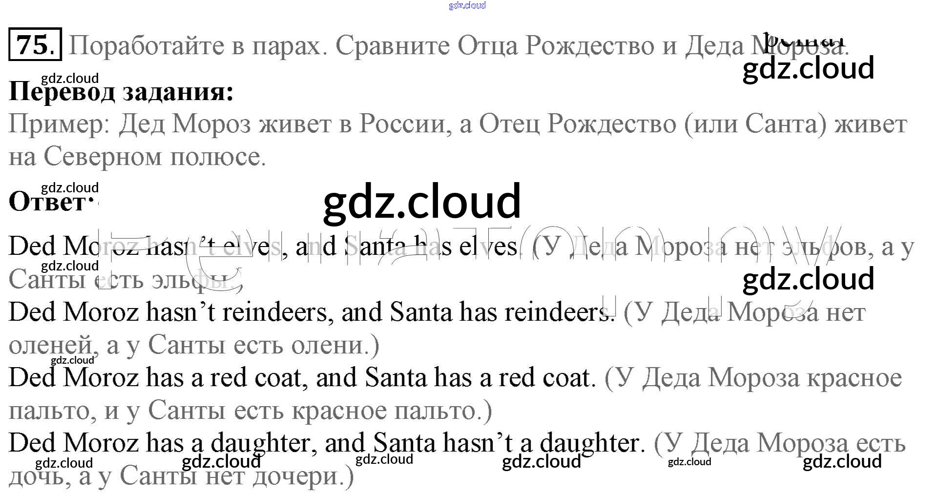 Ответ на задание 75 Учебник Английский язык за 5 (пятый) класс Биболетова, Денисенко, Трубанева Enjoy English 2015