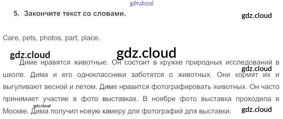 Ответ на задание 5 Учебник Английский язык за 5 (пятый) класс Биболетова, Денисенко, Трубанева Enjoy English 2015