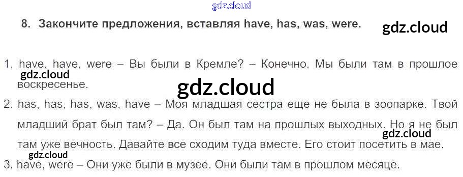 Ответ на задание 8 Учебник Английский язык за 5 (пятый) класс Биболетова, Денисенко, Трубанева Enjoy English 2015