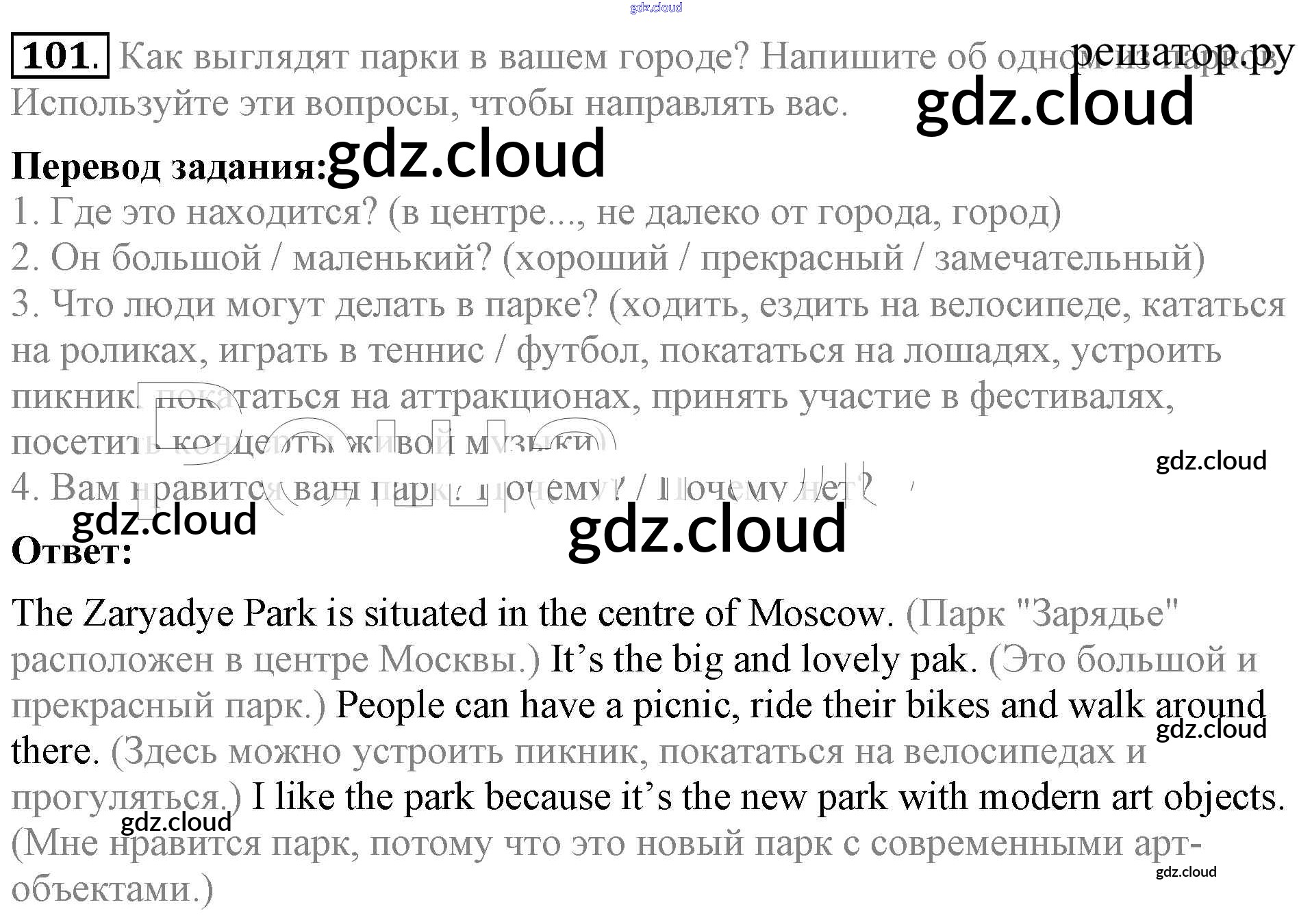 Ответ на задание 101 Учебник Английский язык за 5 (пятый) класс Биболетова, Денисенко, Трубанева Enjoy English 2015
