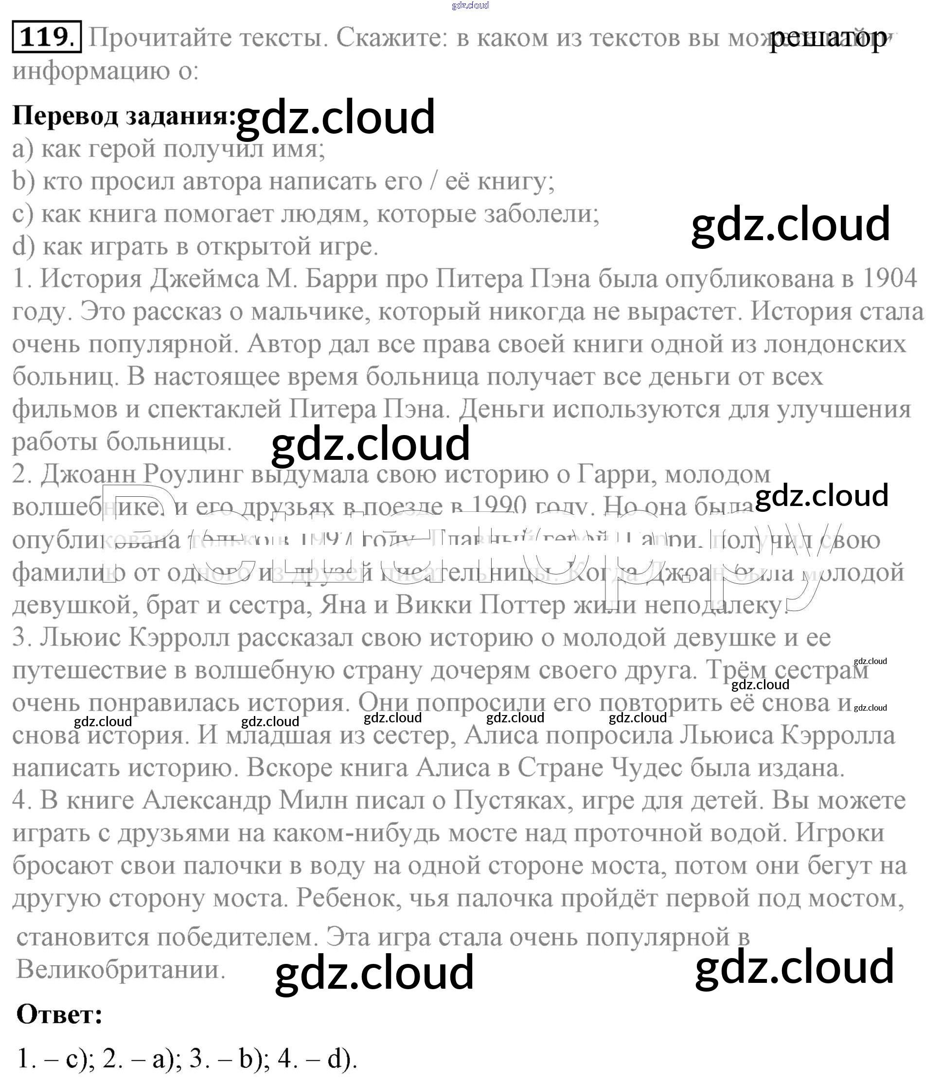 Ответ на задание 119 Учебник Английский язык за 5 (пятый) класс Биболетова, Денисенко, Трубанева Enjoy English 2015