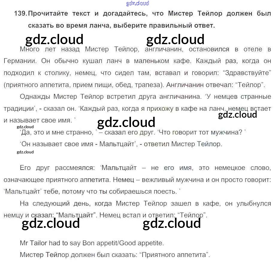 Ответ на задание 139 Учебник Английский язык за 5 (пятый) класс Биболетова, Денисенко, Трубанева Enjoy English 2015