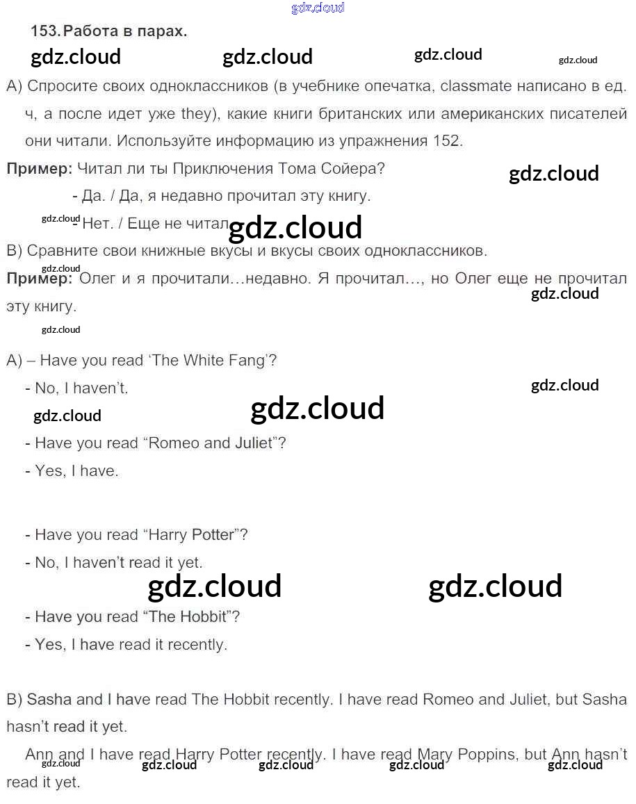 Ответ на задание 153 Учебник Английский язык за 5 (пятый) класс Биболетова, Денисенко, Трубанева Enjoy English 2015