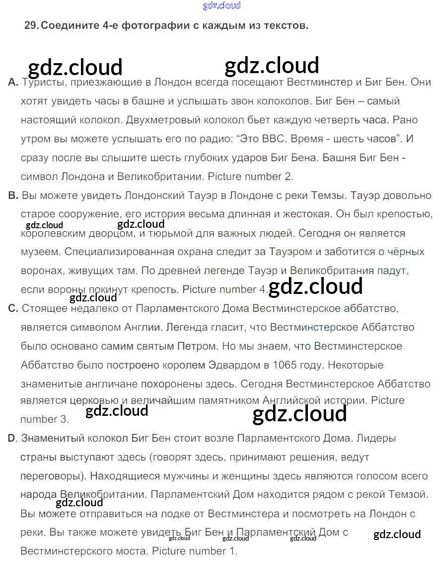 Ответ на задание 29 Учебник Английский язык за 5 (пятый) класс Биболетова, Денисенко, Трубанева Enjoy English 2015