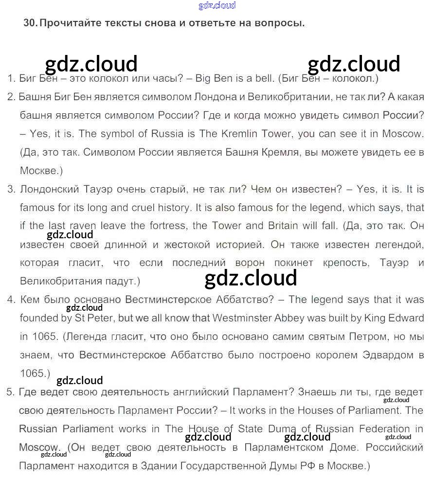 Ответ на задание 30 Учебник Английский язык за 5 (пятый) класс Биболетова, Денисенко, Трубанева Enjoy English 2015