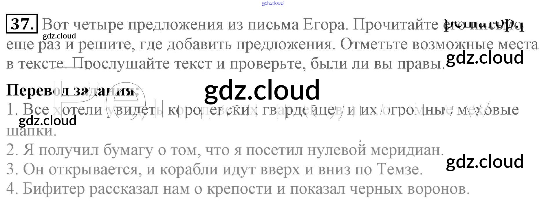 Ответ на задание 37 Учебник Английский язык за 5 (пятый) класс Биболетова, Денисенко, Трубанева Enjoy English 2015