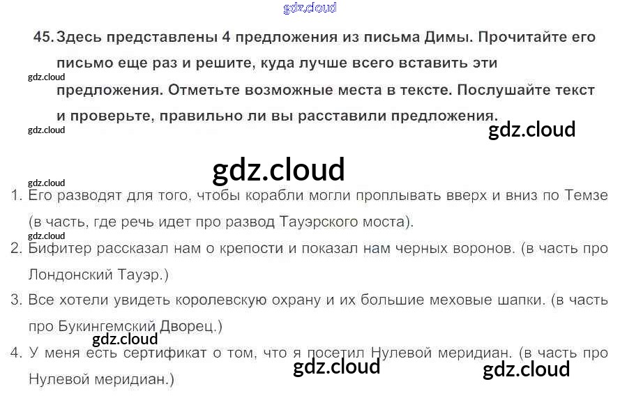 Ответ на задание 45 Учебник Английский язык за 5 (пятый) класс Биболетова, Денисенко, Трубанева Enjoy English 2015