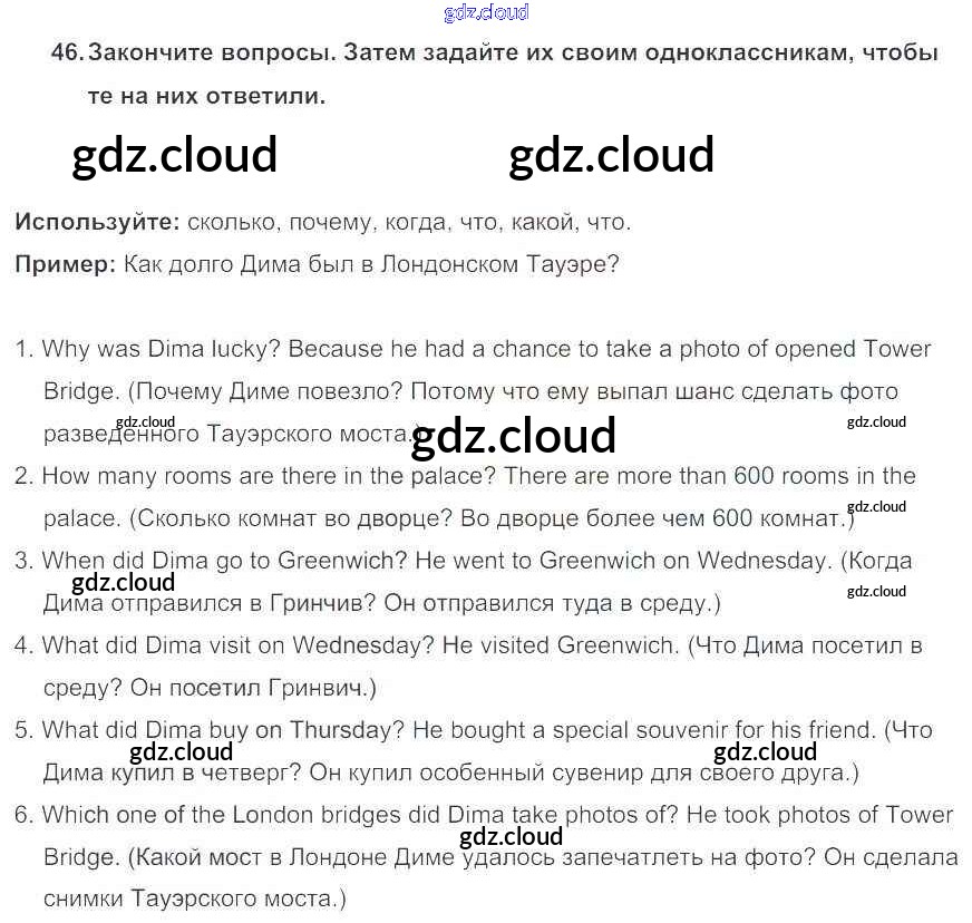 Ответ на задание 46 Учебник Английский язык за 5 (пятый) класс Биболетова, Денисенко, Трубанева Enjoy English 2015