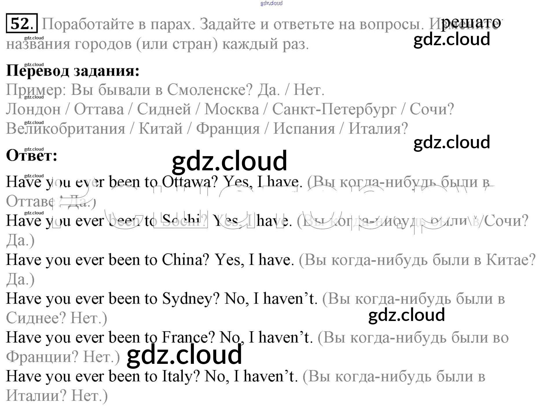 Ответ на задание 52 Учебник Английский язык за 5 (пятый) класс Биболетова, Денисенко, Трубанева Enjoy English 2015