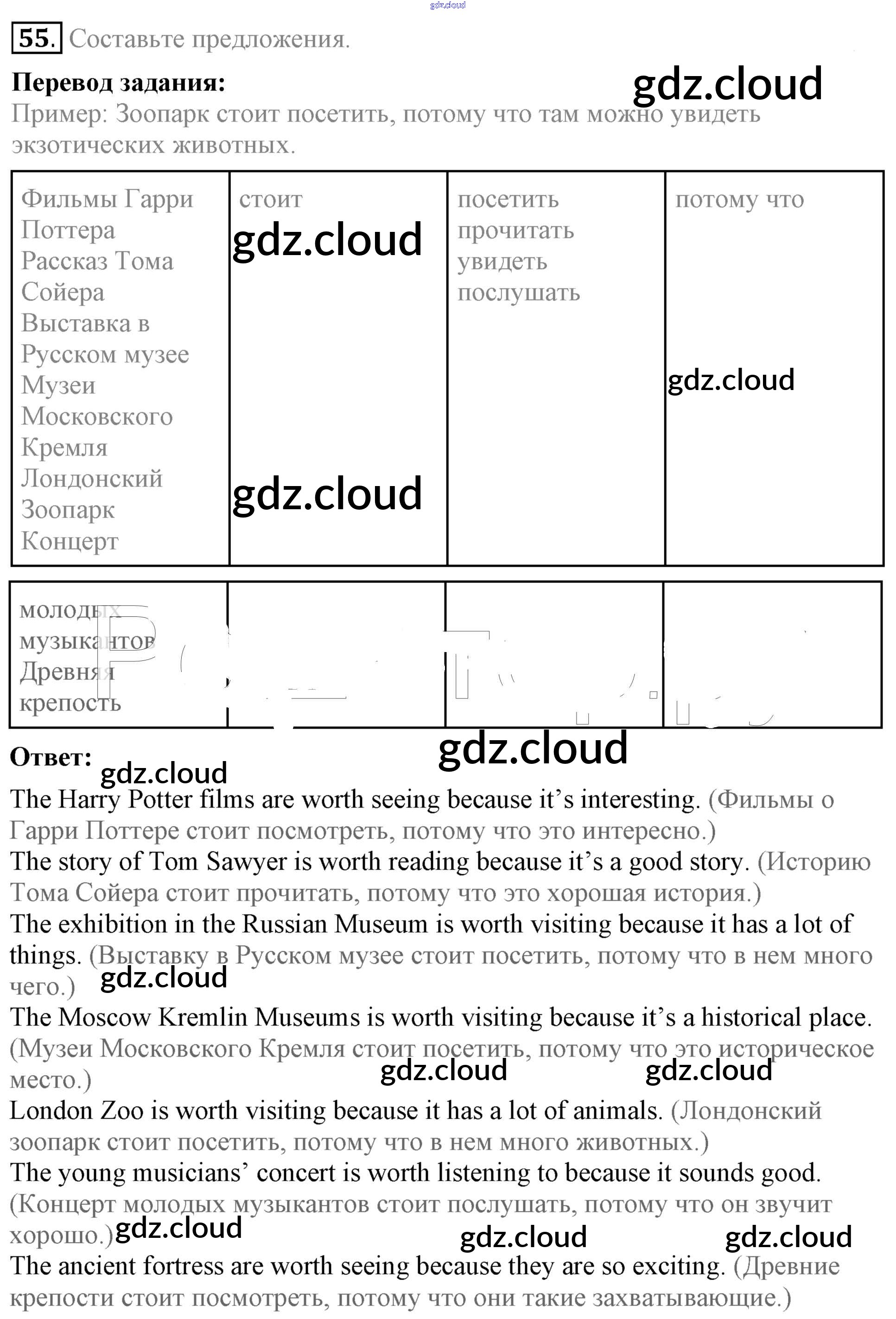 Ответ на задание 55 Учебник Английский язык за 5 (пятый) класс Биболетова, Денисенко, Трубанева Enjoy English 2015
