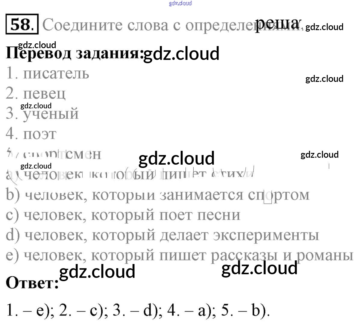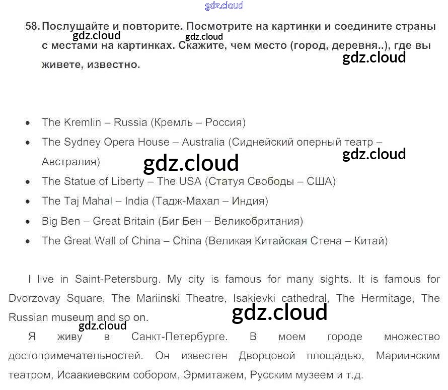 Ответ на задание 58 Учебник Английский язык за 5 (пятый) класс Биболетова, Денисенко, Трубанева Enjoy English 2015