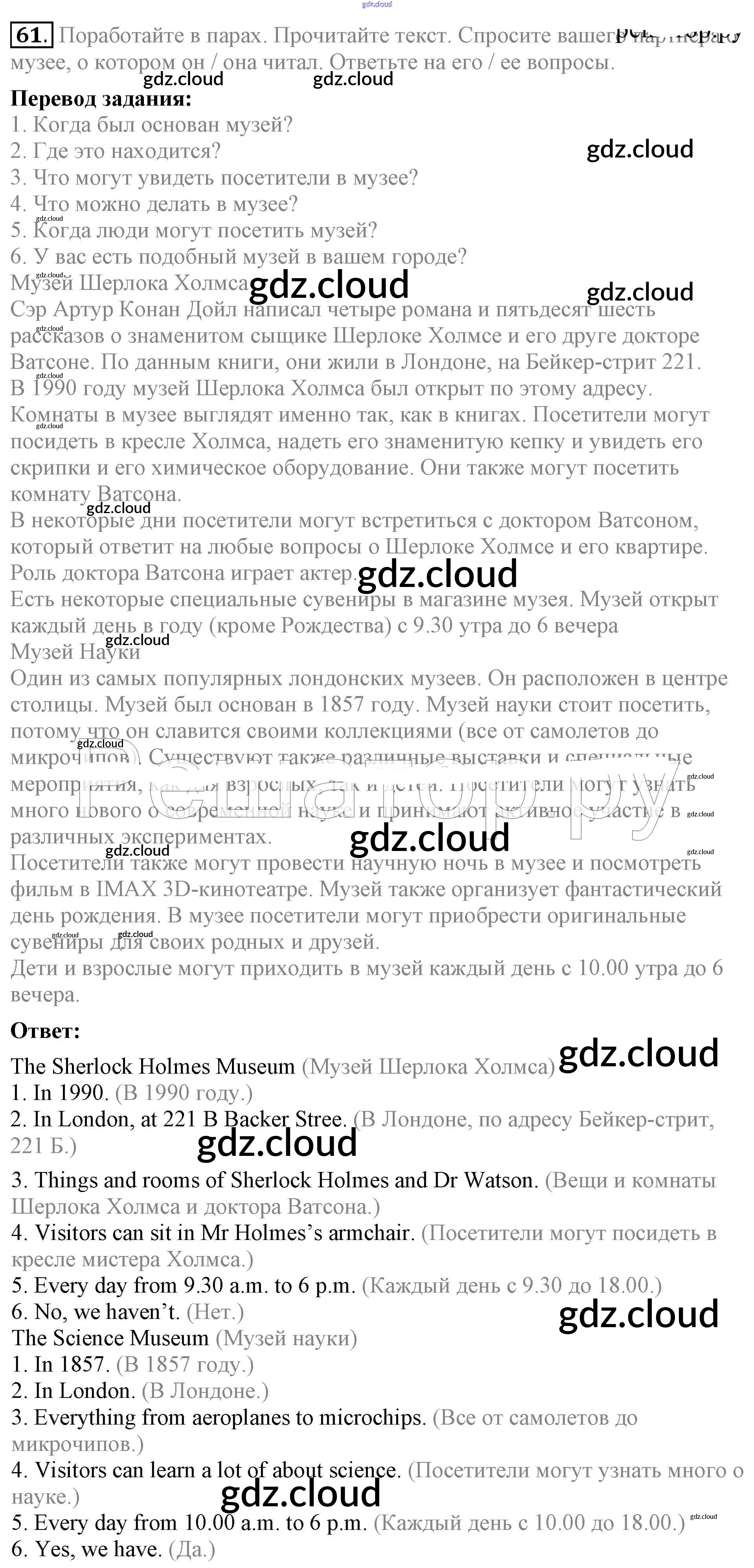 Ответ на задание 61 Учебник Английский язык за 5 (пятый) класс Биболетова, Денисенко, Трубанева Enjoy English 2015