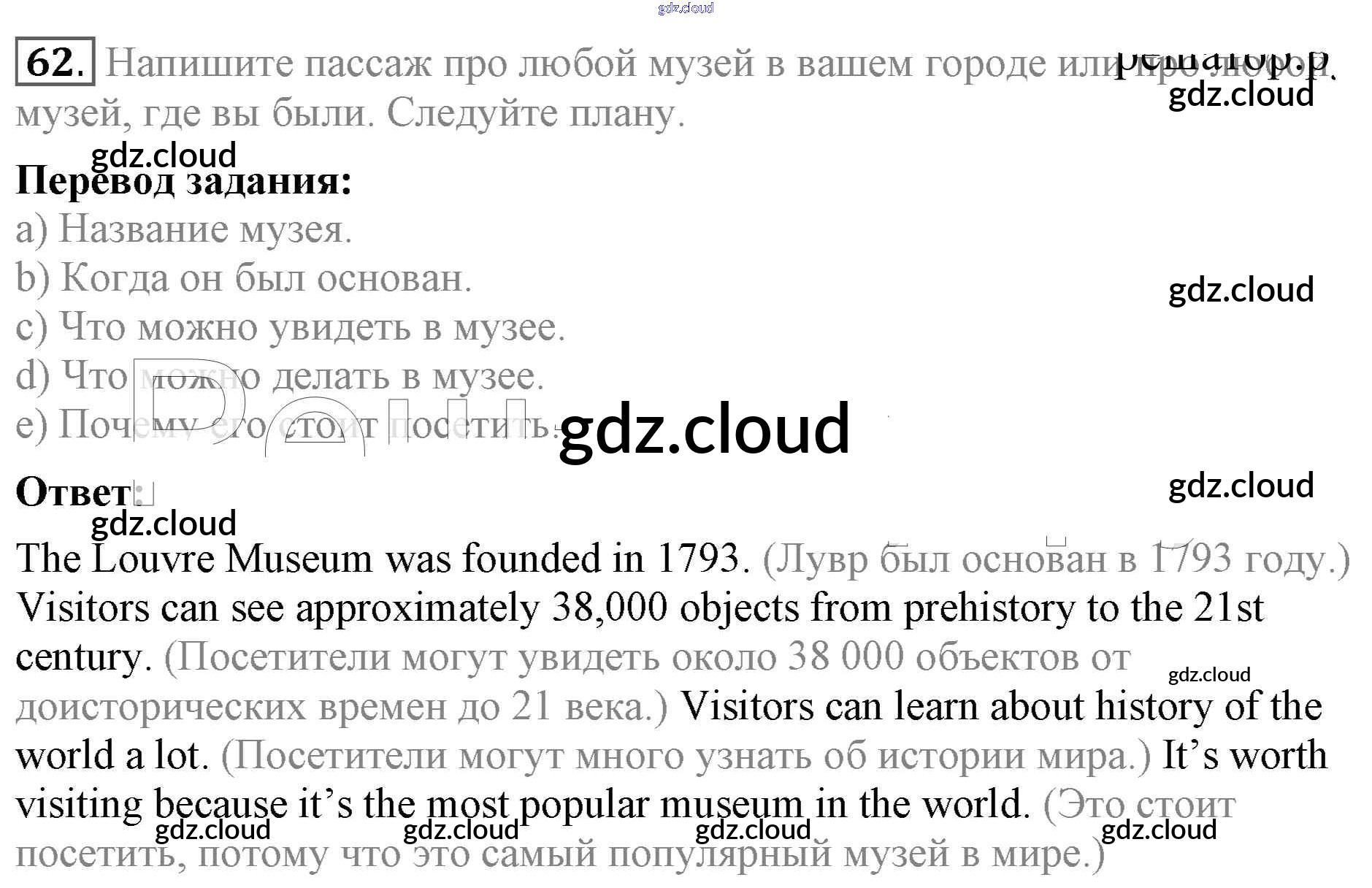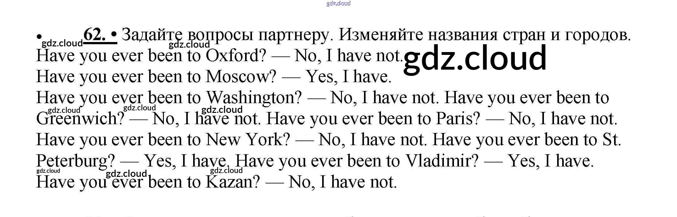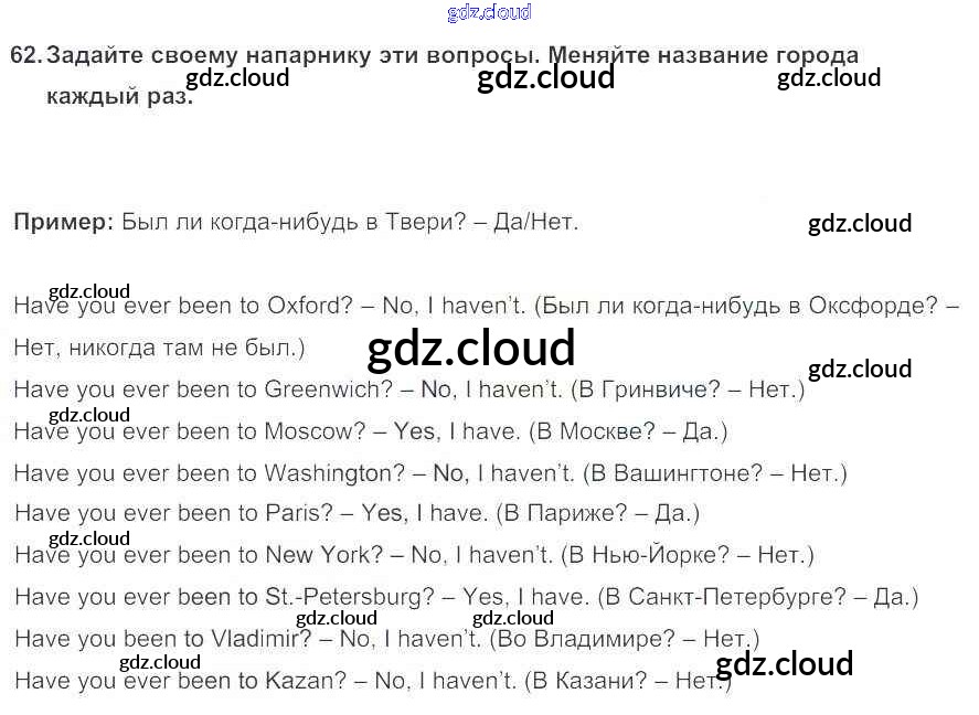 Ответ на задание 62 Учебник Английский язык за 5 (пятый) класс Биболетова, Денисенко, Трубанева Enjoy English 2015