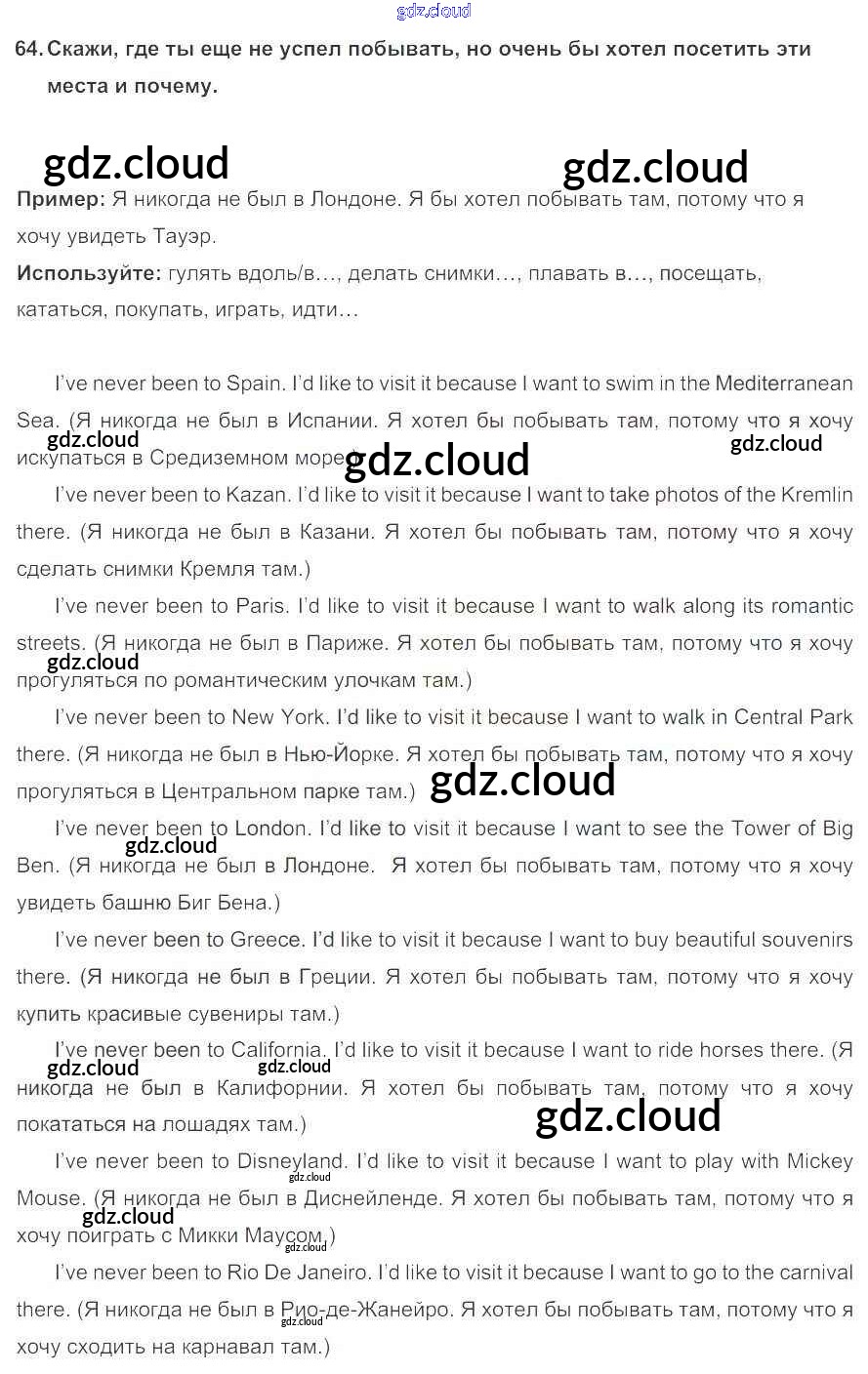 Ответ на задание 64 Учебник Английский язык за 5 (пятый) класс Биболетова, Денисенко, Трубанева Enjoy English 2015