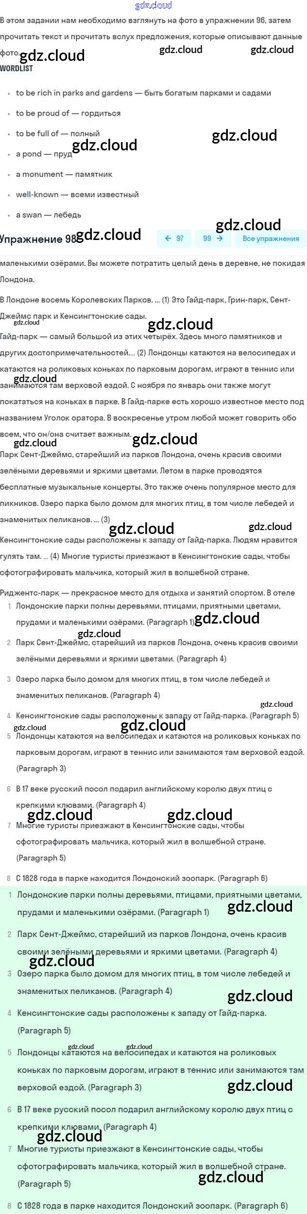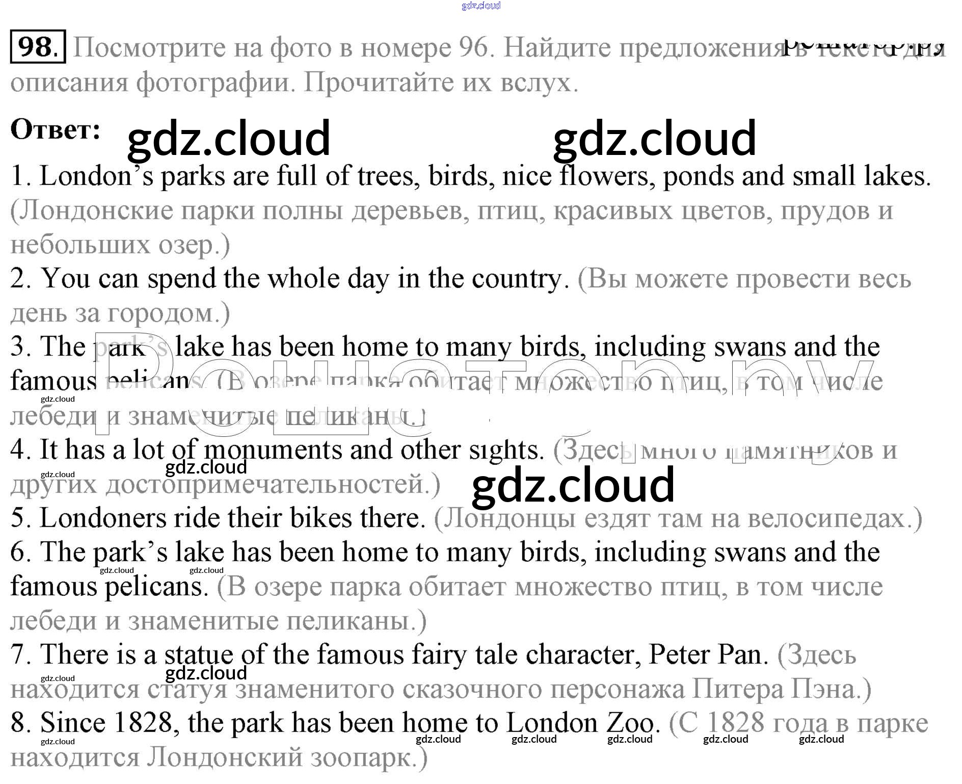Ответ на задание 98 Учебник Английский язык за 5 (пятый) класс Биболетова, Денисенко, Трубанева Enjoy English 2015