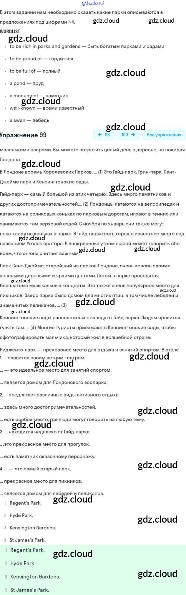Ответ на задание 99 Учебник Английский язык за 5 (пятый) класс Биболетова, Денисенко, Трубанева Enjoy English 2015