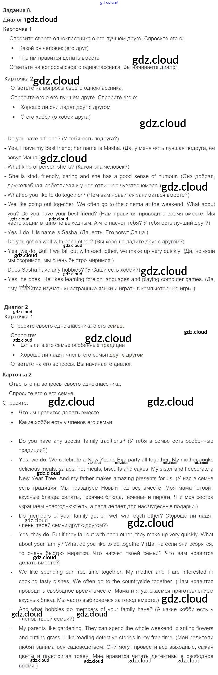 Ответ на задание 8 Учебник Английский язык за 5 (пятый) класс Биболетова, Денисенко, Трубанева Enjoy English 2015