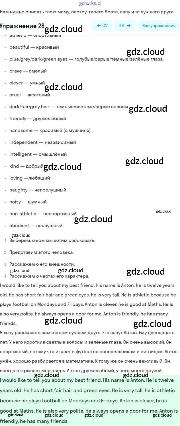 Ответ на задание 28 Учебник Английский язык за 5 (пятый) класс Биболетова, Денисенко, Трубанева Enjoy English 2015