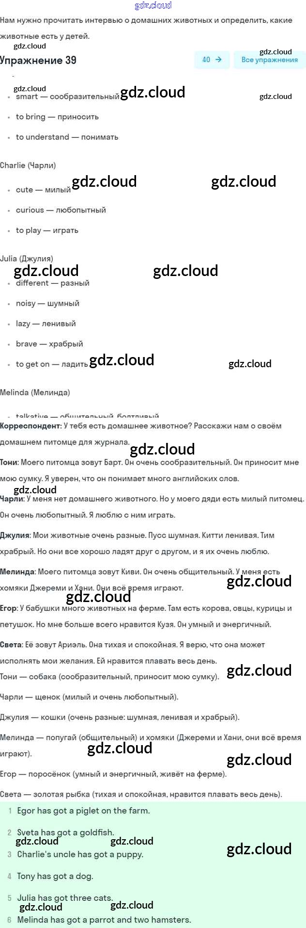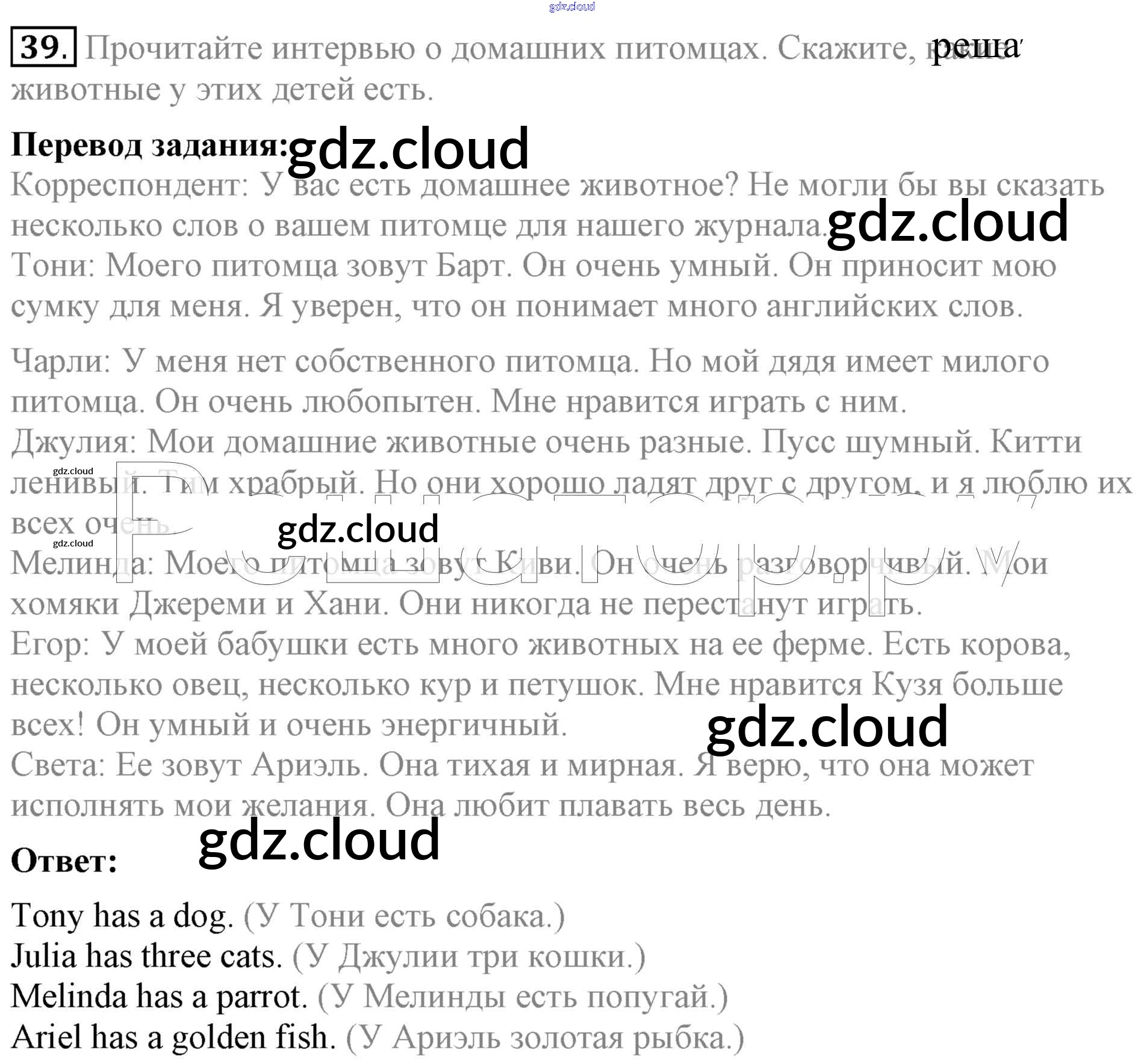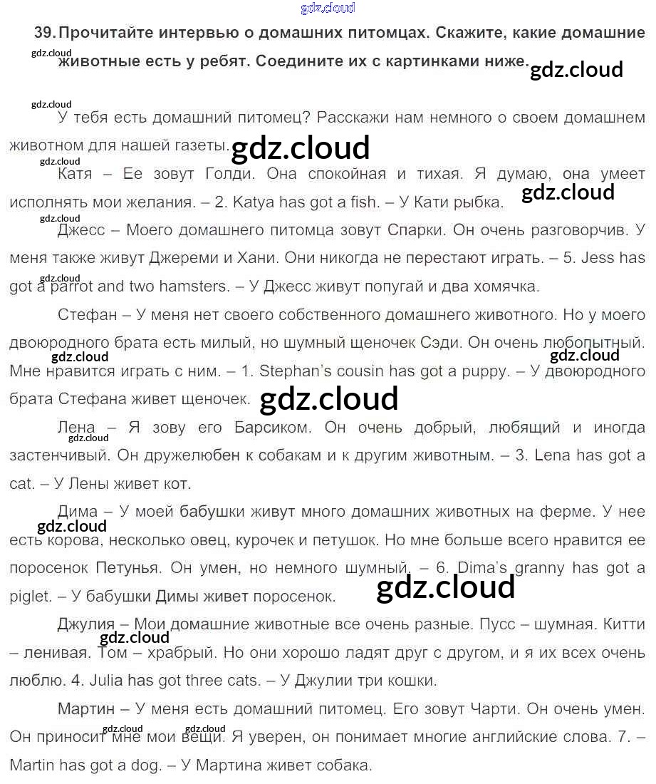 Ответ на задание 39 Учебник Английский язык за 5 (пятый) класс Биболетова, Денисенко, Трубанева Enjoy English 2015