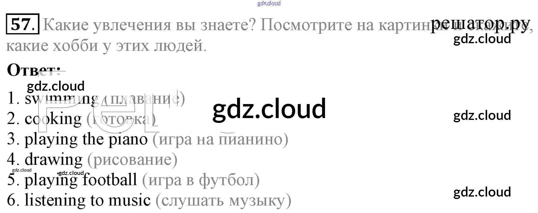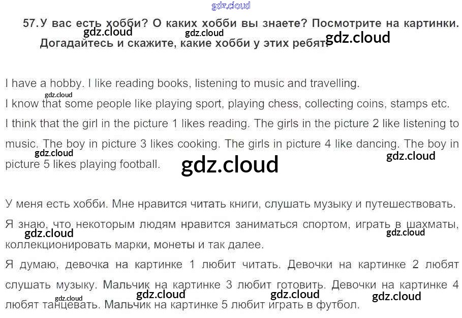 Ответ на задание 57 Учебник Английский язык за 5 (пятый) класс Биболетова, Денисенко, Трубанева Enjoy English 2015