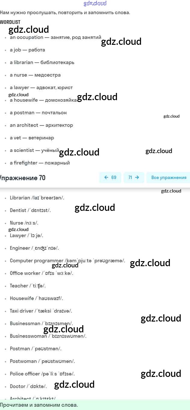 Ответ на задание 70 Учебник Английский язык за 5 (пятый) класс Биболетова, Денисенко, Трубанева Enjoy English 2015